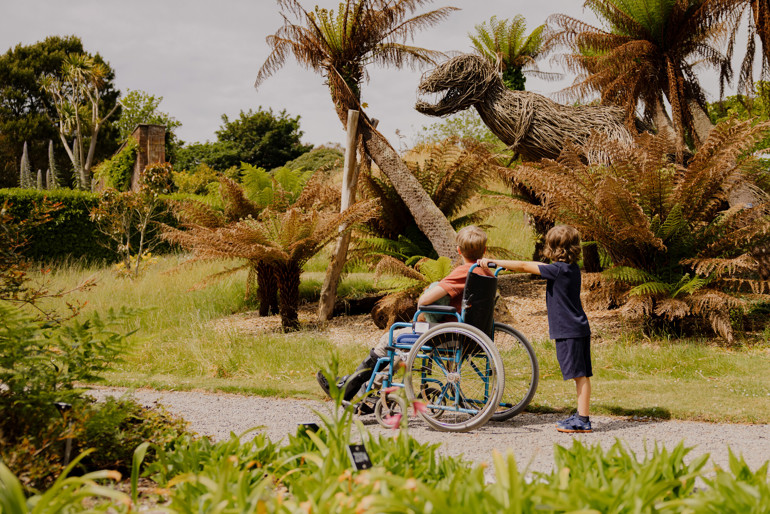 Wander through an antipodean forest where towering palms and tree ferns create an exotic atmosphere.