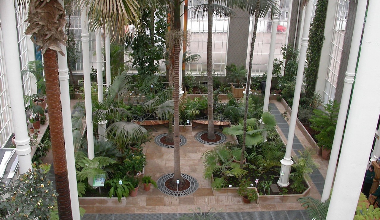 Filled with Ferns & Palms to complement the Victorian idea for the display, although ours are planted rather than maintained in pots as they did from 1713 to 1890. The light levels in this house are far lower than those in other glasshouses due to the wide stone pillars. Since the temperature never falls below 10°C, many frost-tender species thrive here.