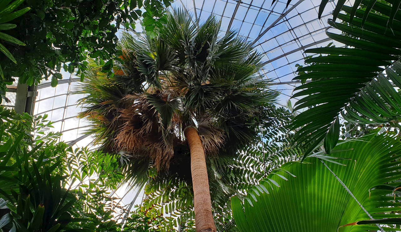 The Tropical Palm House is not only the oldest glasshouse in Edinburgh dating from 1834, but also boasts the Garden's oldest palm at its centre. The Sabal bermudana was moved from the previous Leith Walk site in 1822 and spent the first 70 years at the Inverleith site in an ever increasing pot. It was finally planted into its current position around 1892. Look out for other palms like the multi-stemmed Caryota and the climbing Rattan, not to mention our giant bamboo whose growth can go from ground to roof in 4 to 5 weeks!