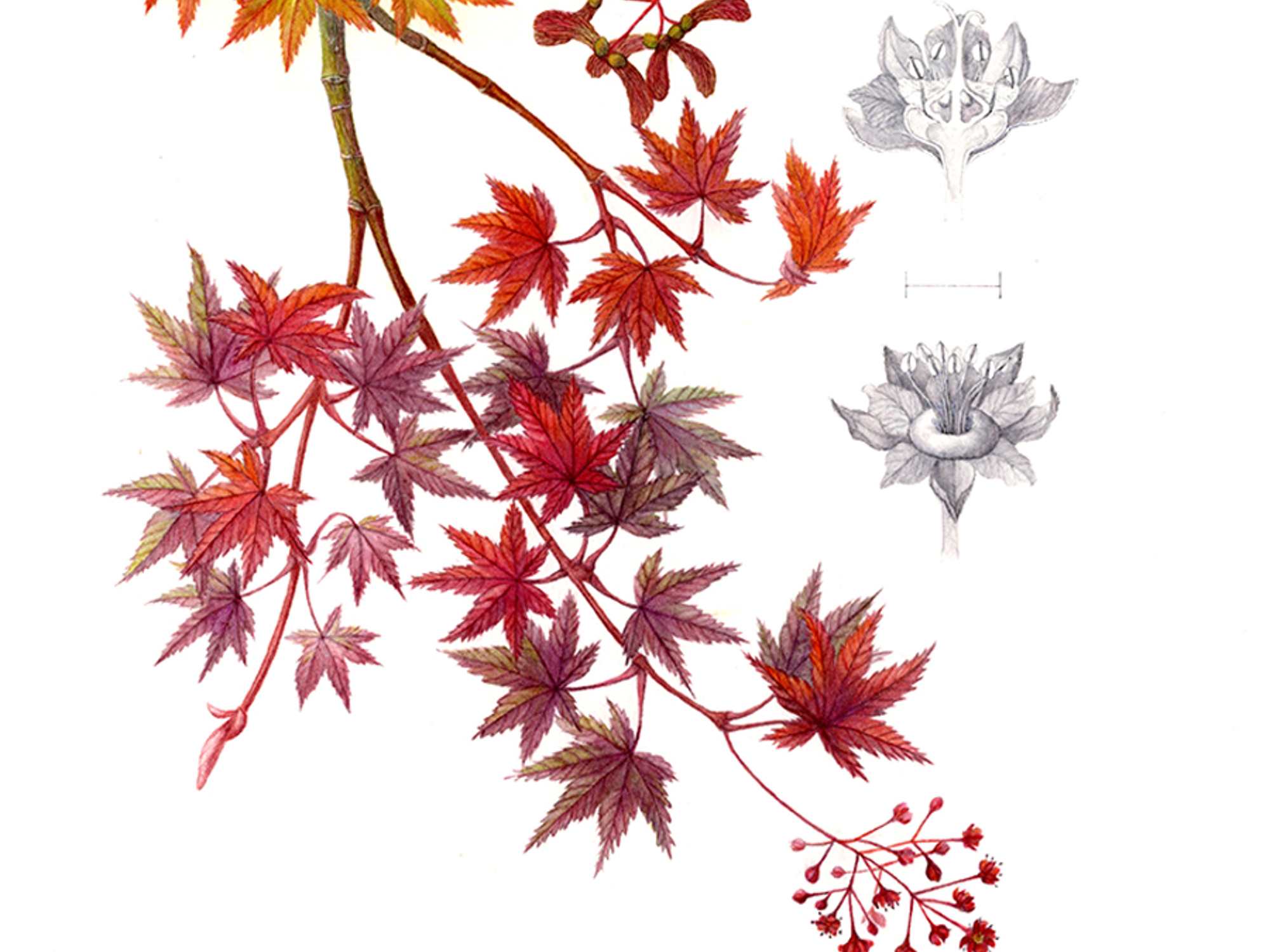 This project developed out of my lifelong interest in Asian arts. The species illustrated were all originally native to Japan but can now be found in gardens throughout the world. My work aims to depict their structure objectively and at the same time reference the traditional arts of Japan.