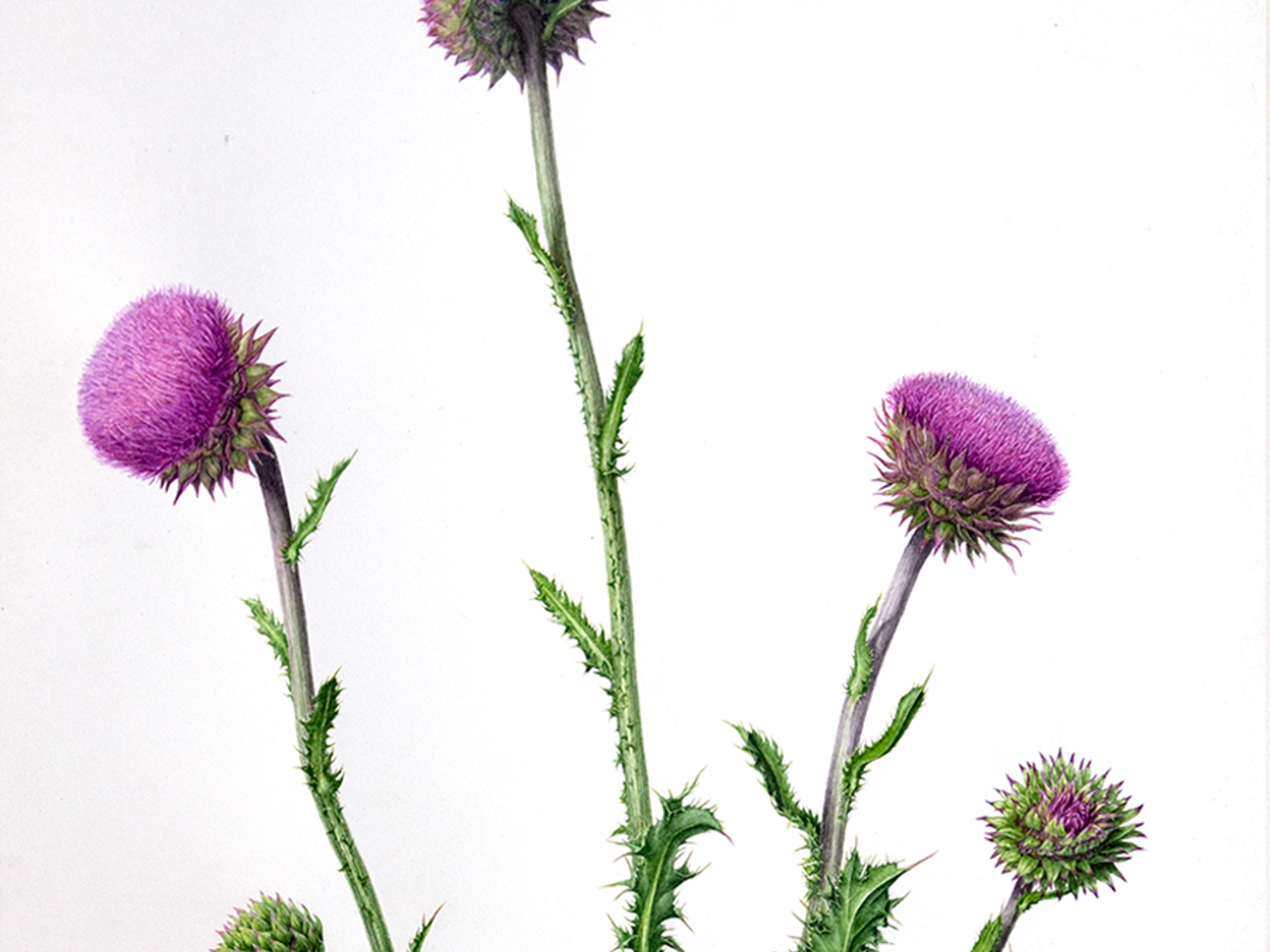 My attraction to botanical illustration stems from an interest in southern Alberta’s native plants and ecology. My creative process forges a deep connection with my botanical subjects, and has underscored the complexity of the natural world, and just how vulnerable and precious natural ecosystems are. While my work adheres to the scientific tenets required for botanical illustration, my background is firmly planted in the world of fine art. It is natural then, that my priority is to produce pieces of art, while keenly observing plants and their place in the natural world. By using vivid colours, and dramatic lights and shadows I strive to imbue my paintings with depth and three dimensionality, thus breathing life into each plant on the paper.