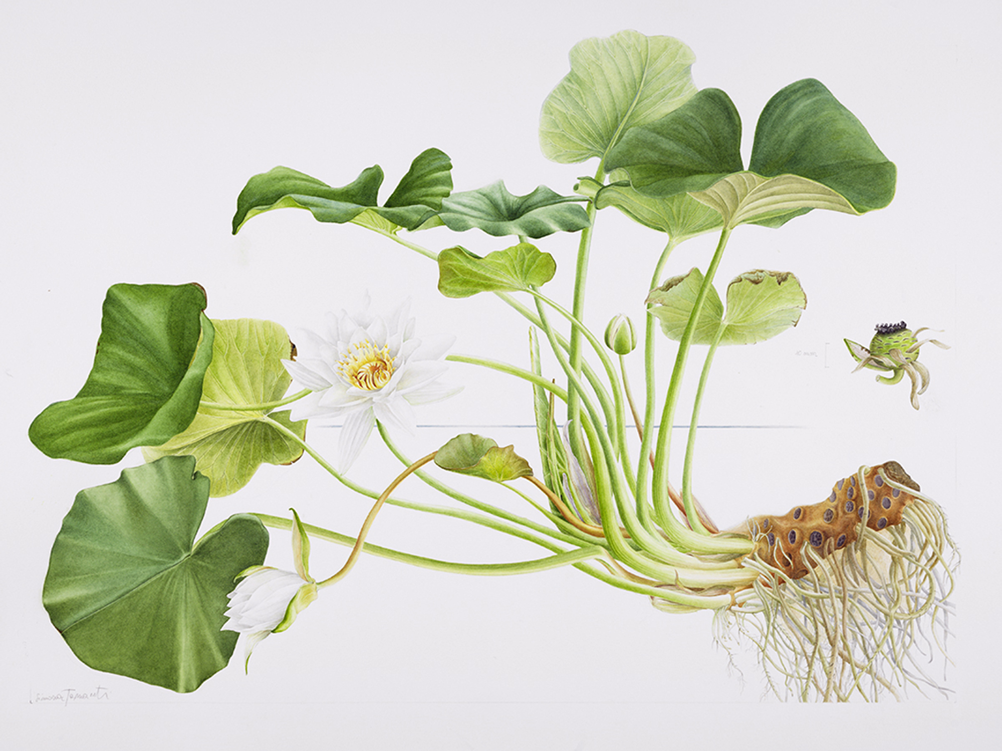 I chose to paint aquatic plants for my Diploma project because I have always been captivated by the beauty and mystery of what happens beneath the water’s surface. Often, only the emerging flower is admired, while the rest of the plant is overlooked. My curiosity drove me to explore the structure and root development of these species in the soil.