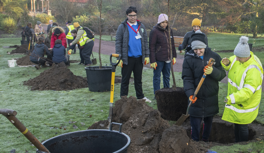 Heritage and horticulture through the generations are the key partners in marking National Tree Week today (November 30). Pupil gardeners from Pilrig Park School are contributing to the Queen’s Green Canopy initiative by helping the experts plant an avenue of cherry trees at the Royal Botanic Garden Edinburgh (RBGE).