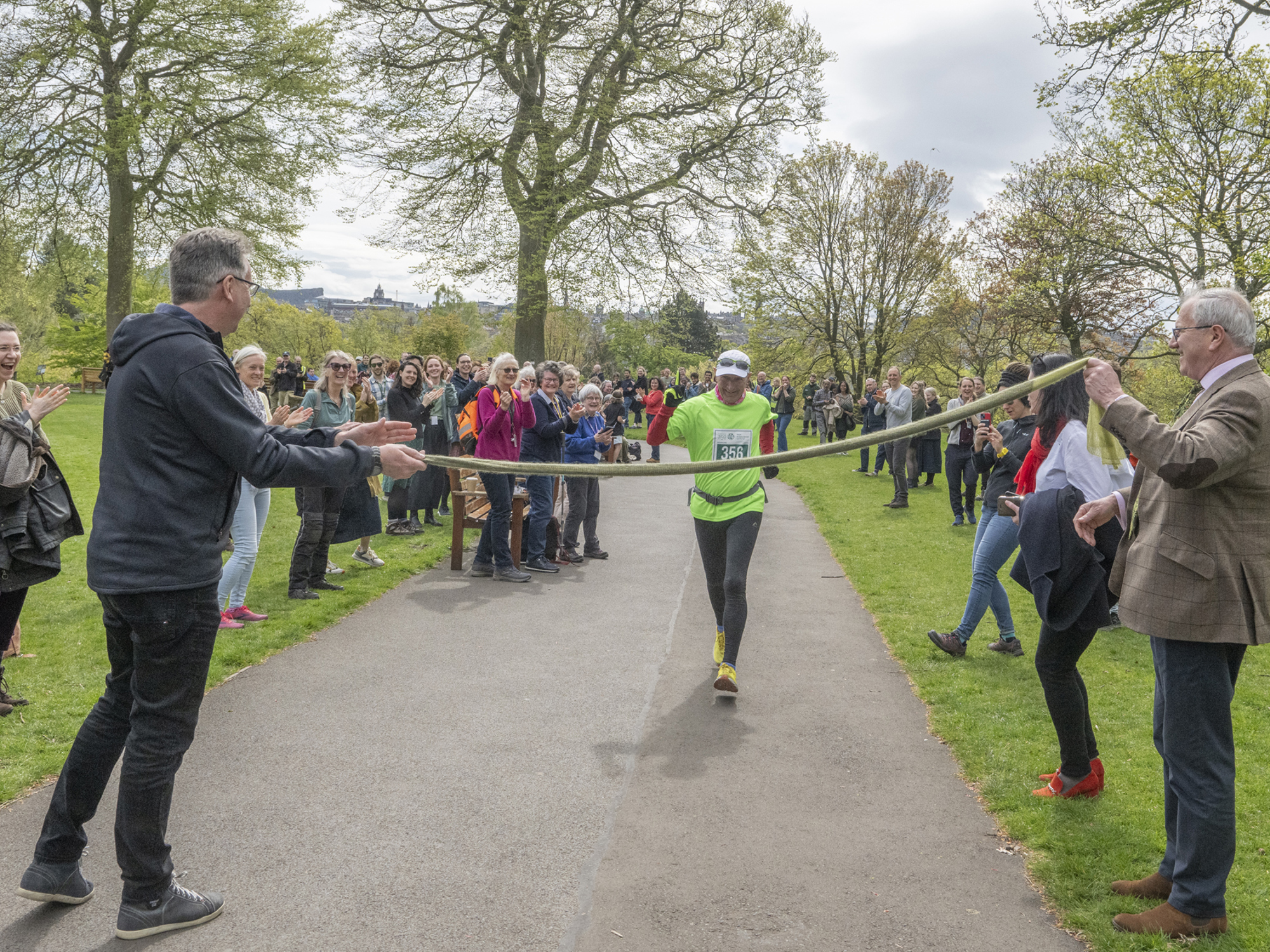 The final day of his run had seen him visit RBGE’s three former Edinburgh sites at the Palace of Holyroodhouse, Waverley Station and Hopetoun Crescent Gardens, before arriving at the Garden’s East Gate, storming up the hill and arriving at Inverleith House Lawn to rapturous applause from staff and visitors and a warm welcome from Regius Keeper Simon Milne.