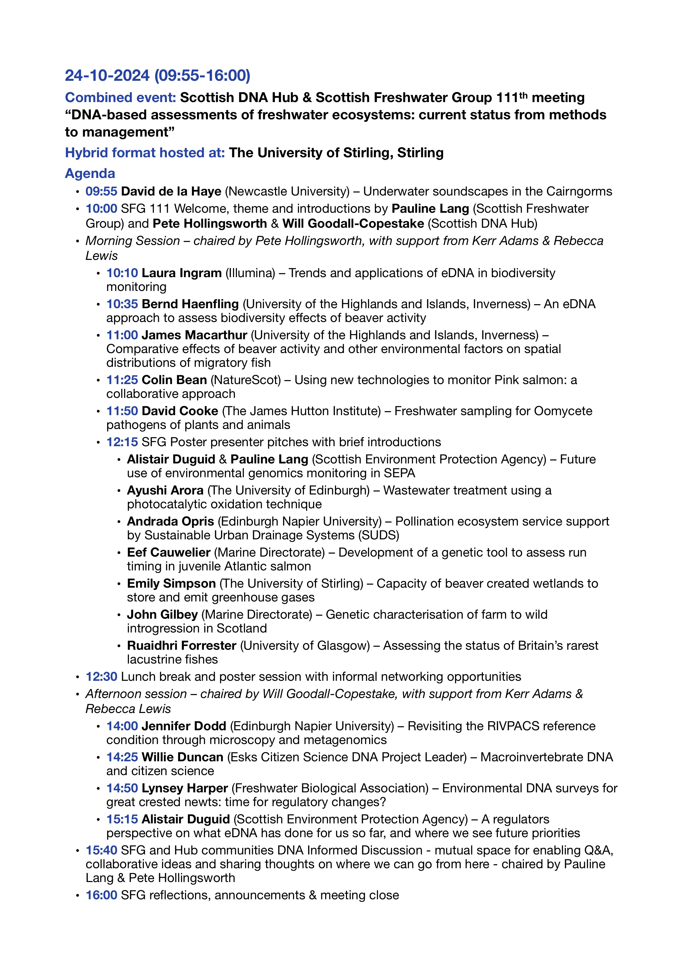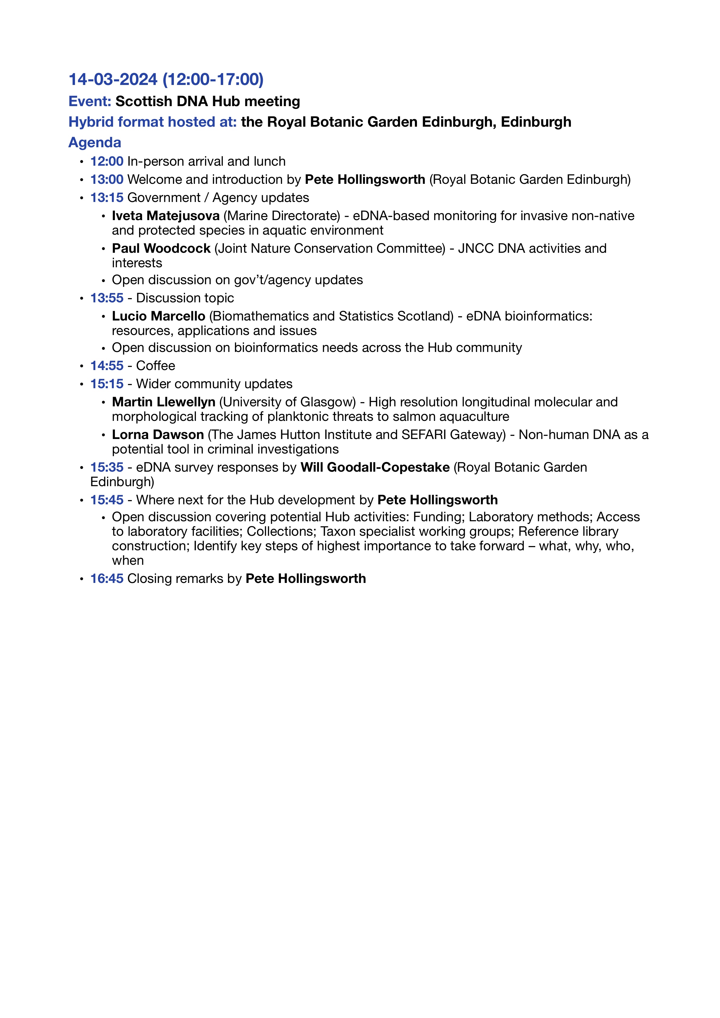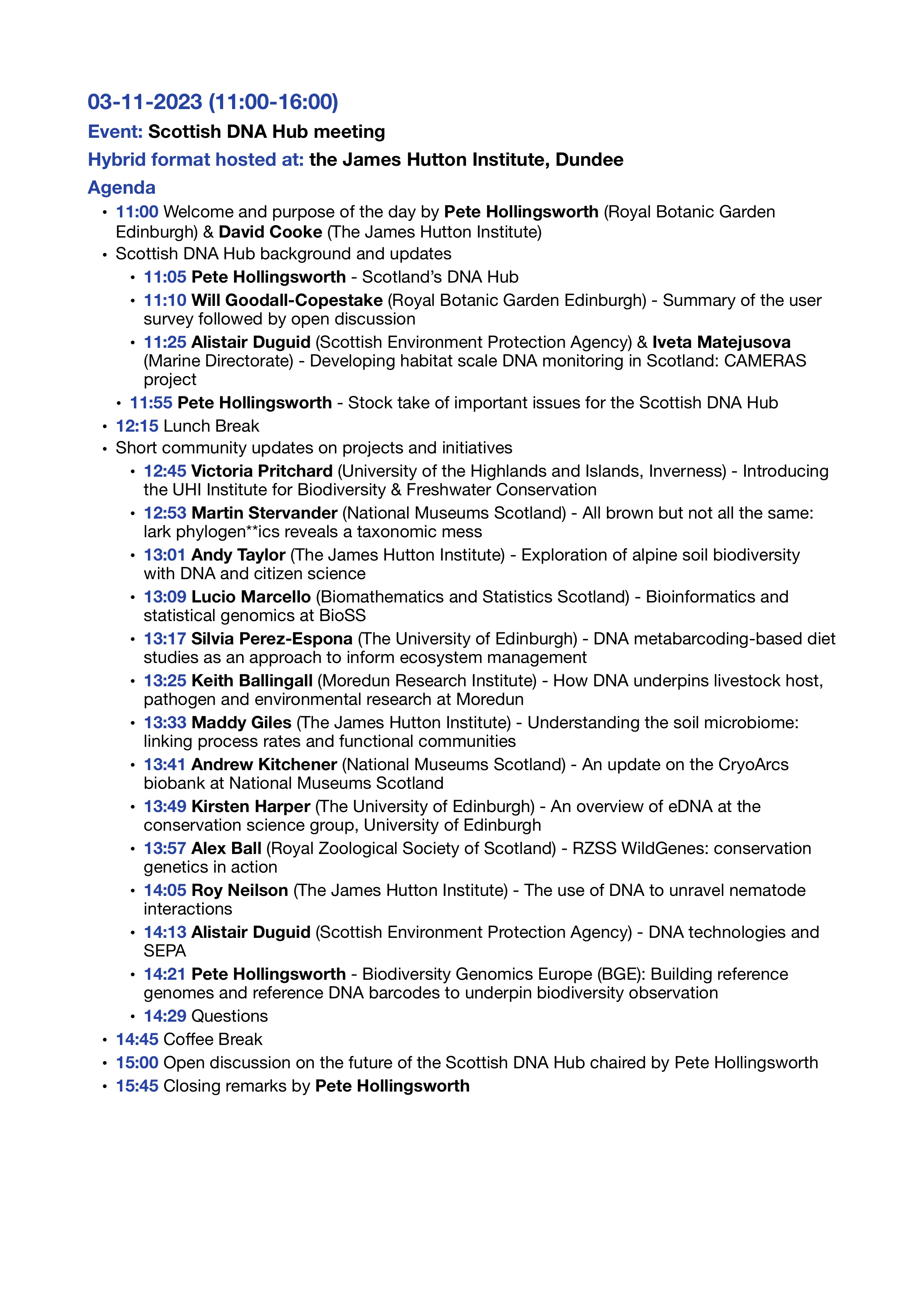 Hybrid meetings are held one-two times a year and rotated across different member organisations. The hub also runs a mailing list. It has been involved in one major project to date: Developing habitat scale DNA monitoring in support of post 2020 biodiversity reporting requirements.