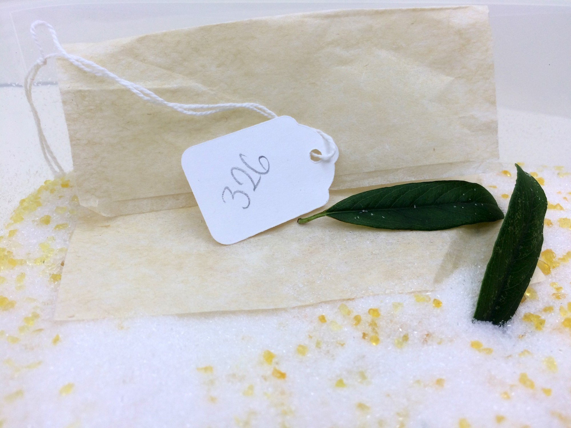 Originally, leaf material was chosen and placed into a bag with direct contact to the silica gel granules. The granules would often comprise a mix of standard silica granules and a certain amount of indicator granules which will change colour depending on the water taken up.