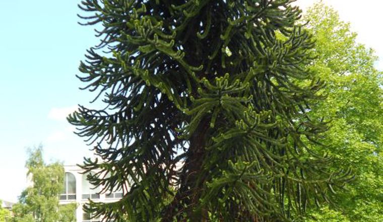 Introduced to the UK in 1795 by Archibald Menzies, the scientific name is derived from the Araucanos, a group of indigenous Chilean people who live in the region where the monkey puzzle is native. The common name monkey puzzle was first used during its cultivation in Cornwall, when the owner of the plant commented that the branching was "enough to puzzle a monkey".