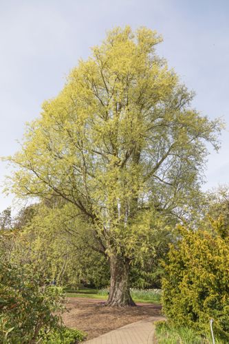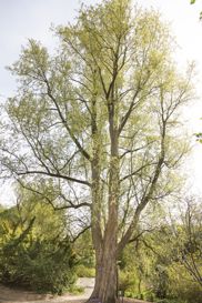 The White willow can grow up to 25m high, with dark grey furrowed bark. Its long, narrow pointed leaves, up to 10cm long, are dull green above, blue-green beneath, and silky, so that they appear silvery-white at a distance; catkins, 4-6cm long, appear with the leaves in spring.